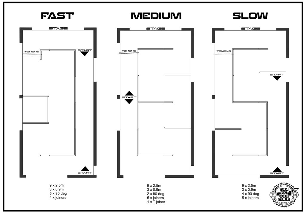 These are some of the typical track layouts we use. Space is at a premium but racing is very cheap and a lot of fun.